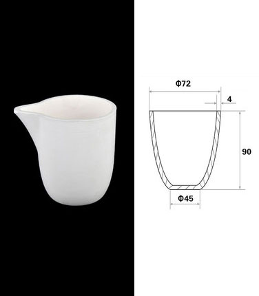 - Ce creuset à bec en forme d’arc en corindon est fabriqué à partir d’Al2O3 de haute pureté (>99%) par un procédé de coulée en barbotine, ce qui permet d’obtenir une densité élevée et des surfaces lisses et régulières à l’intérieur et à l’extérieur du creuset. Il est conçu pour une utilisation à long terme à des températures allant jusqu’à 1600°C.