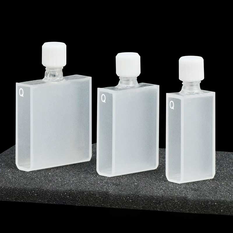 Cuvette en quartz avec bouchon à vis, 2 fenêtres, frittée par poudrage