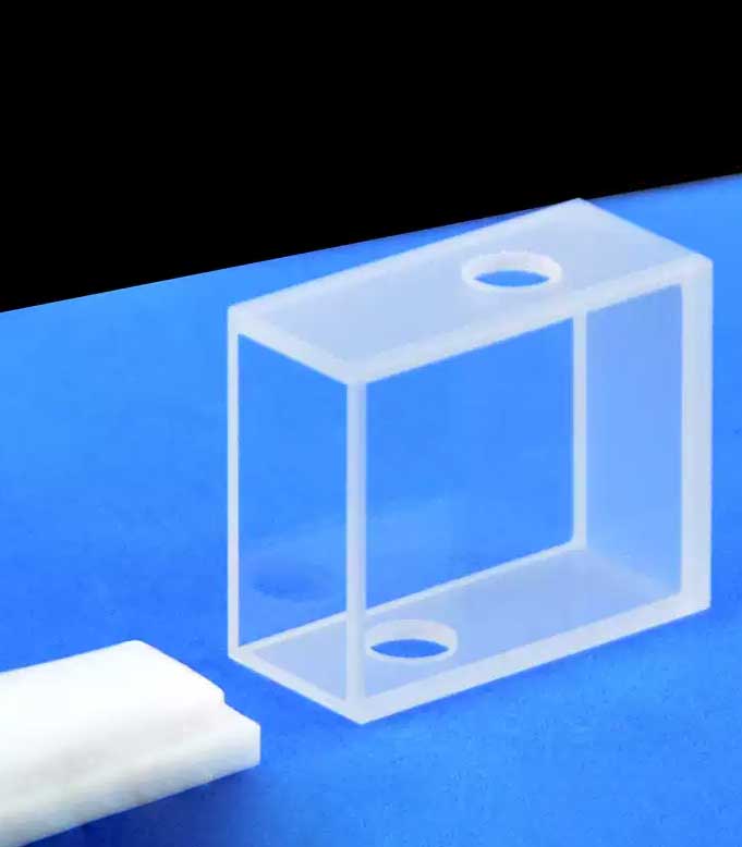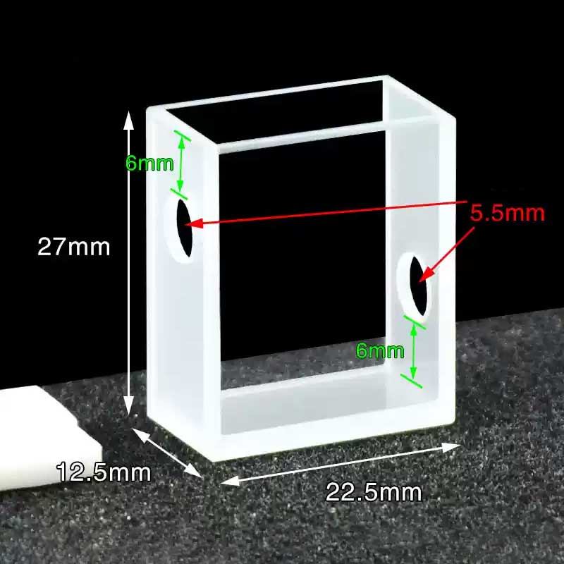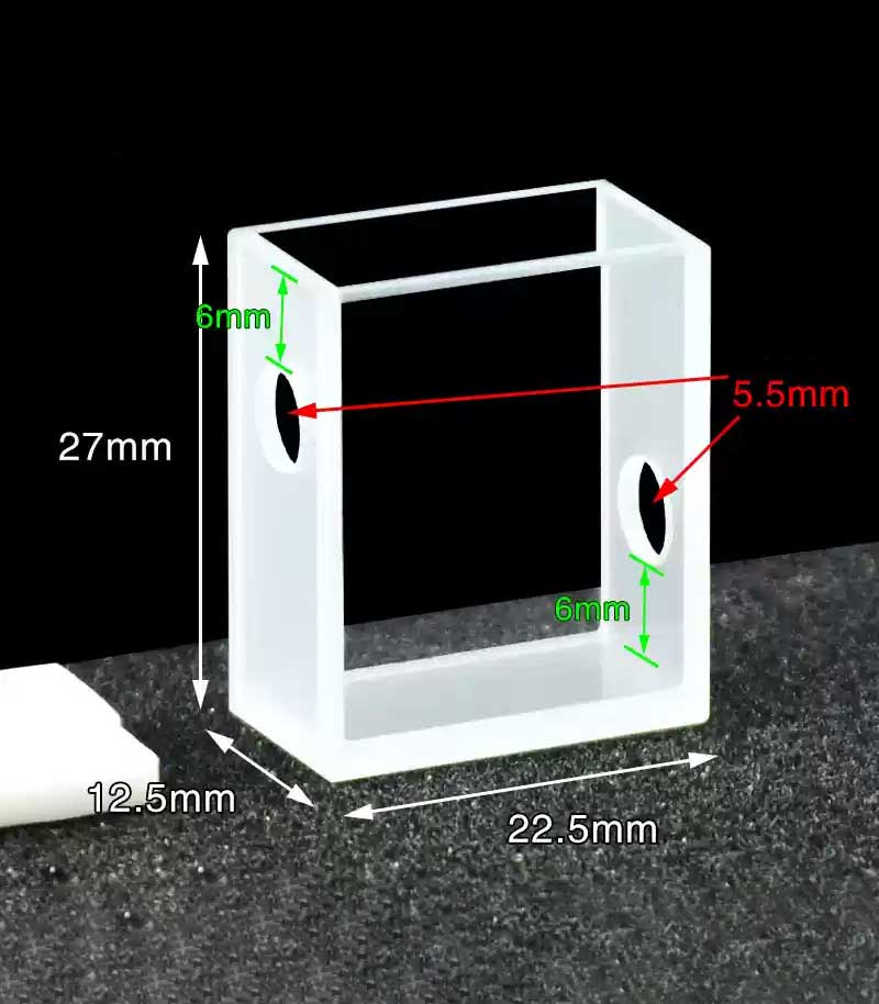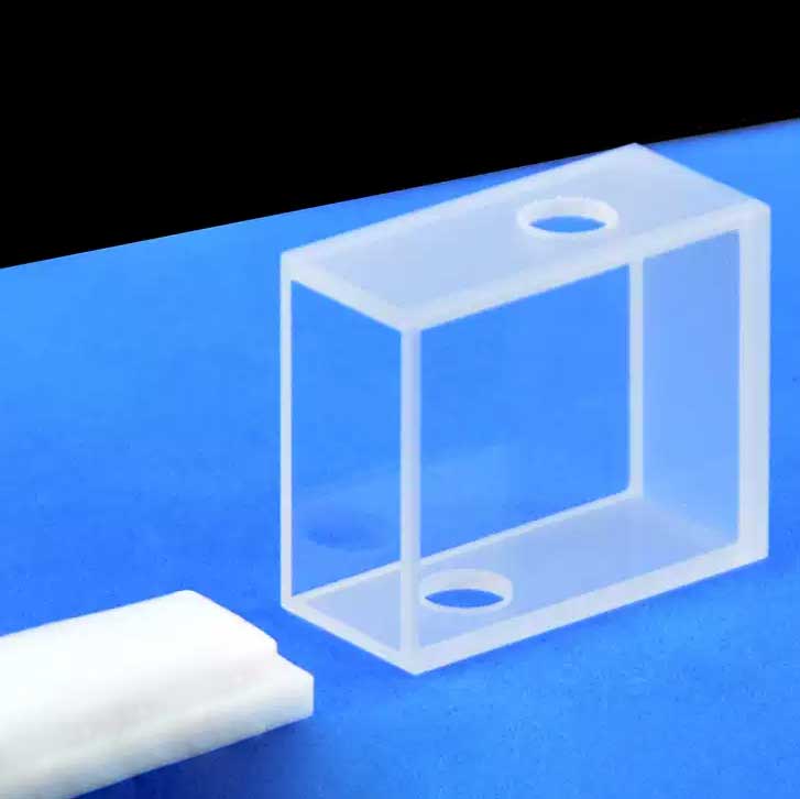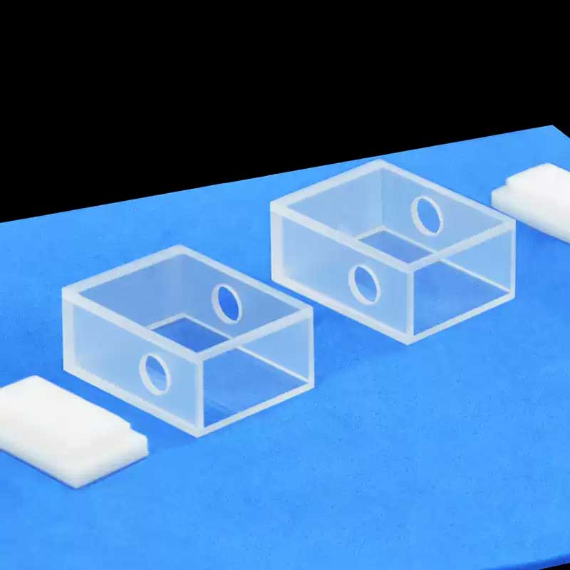 Cuvette en quartz personnalisée, paroi latérale avec trou, 2 fenêtres, 10mm, frittée par poudrage