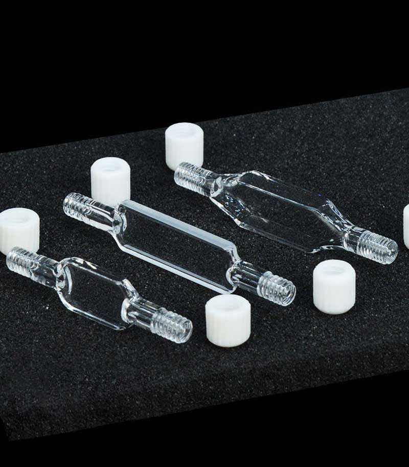 - Cette cellule d'écoulement personnalisée est fabriquée en quartz UV, avec une épaisseur de paroi de 1,5 mm, une longueur de trajectoire de 10 mm et un volume de 4 ml. Le diamètre extérieur du connecteur de tube est de 4 mm et le diamètre intérieur de 2 mm.