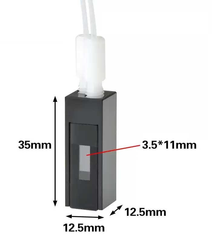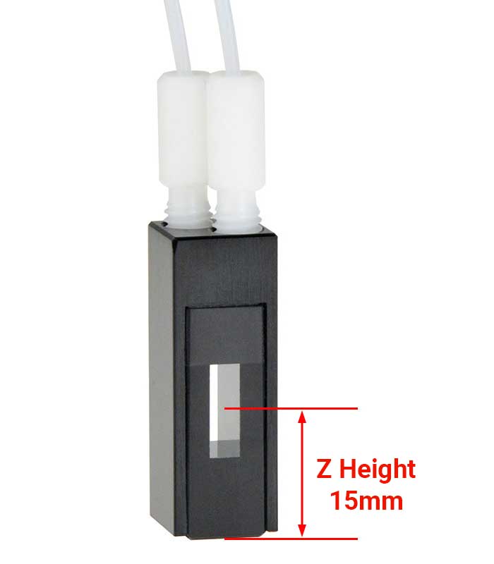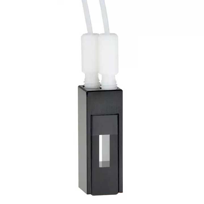 Flow-through Cell with PTFE Tubing, ZD 15mm, 2 Windows, 380ul, Glued