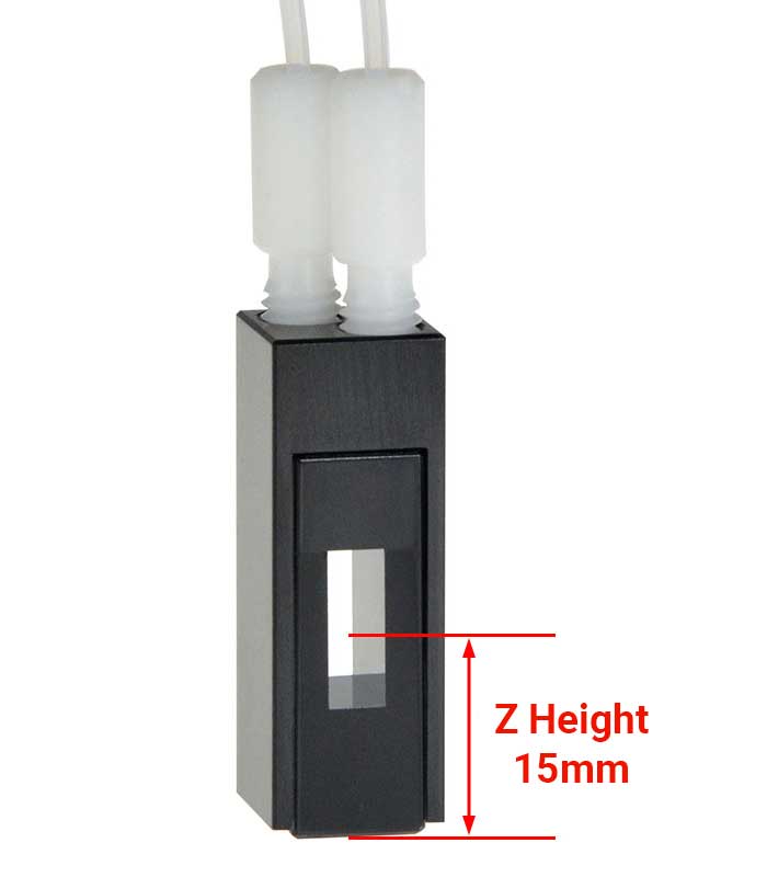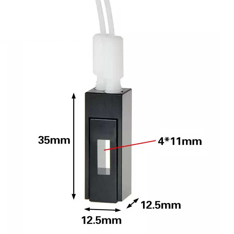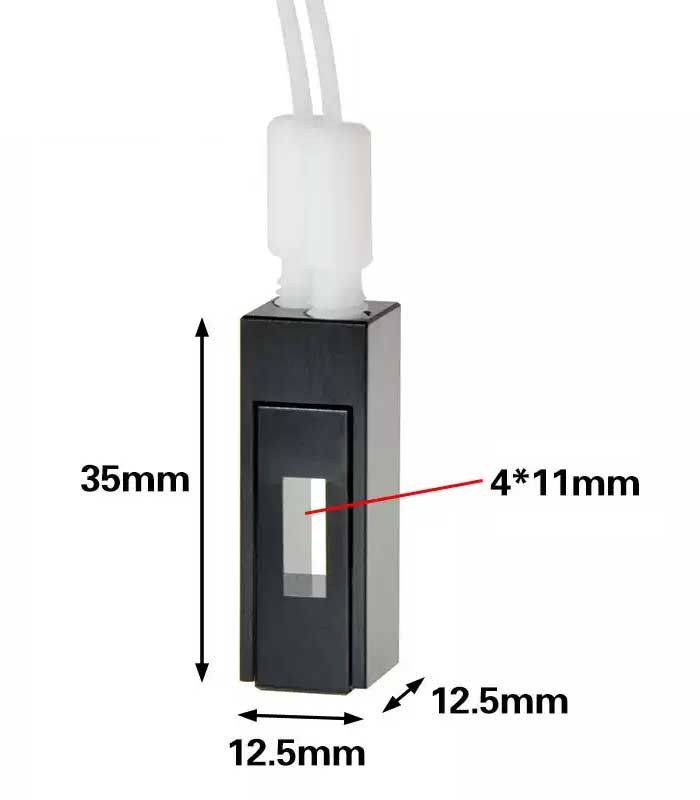 Flow-through Cell with PTFE Tubing, ZD 15mm, 2 Windows, 440ul, Glued