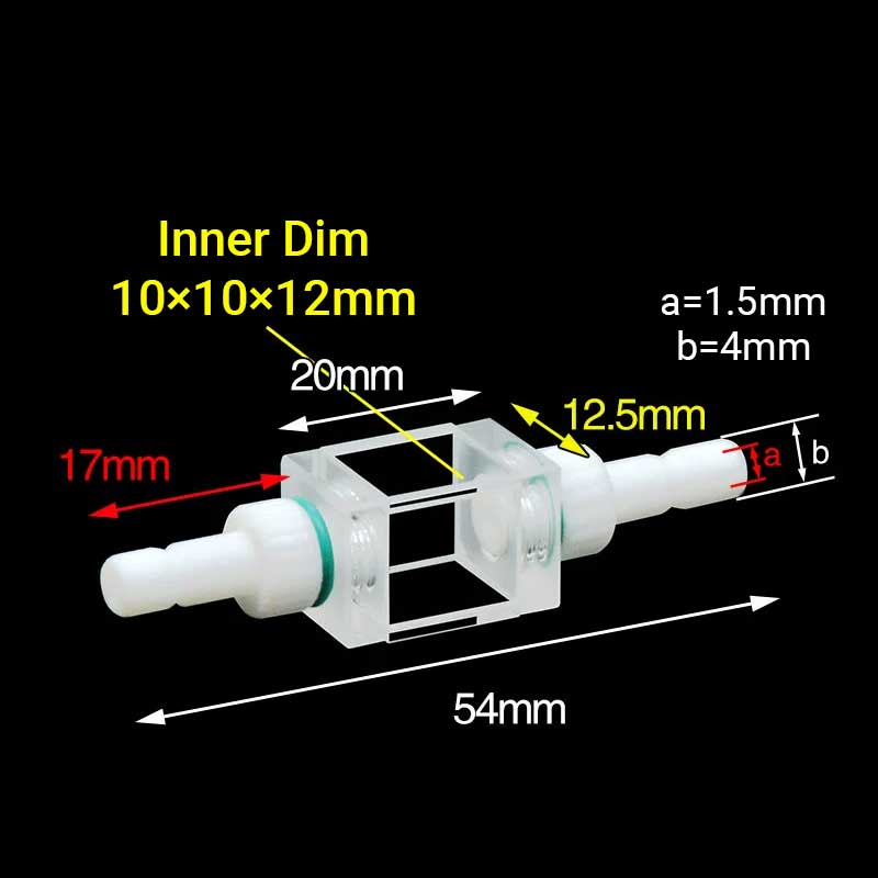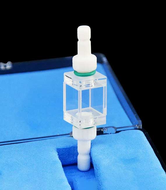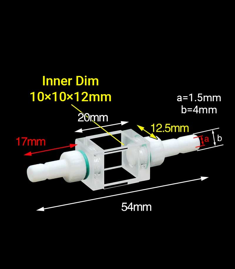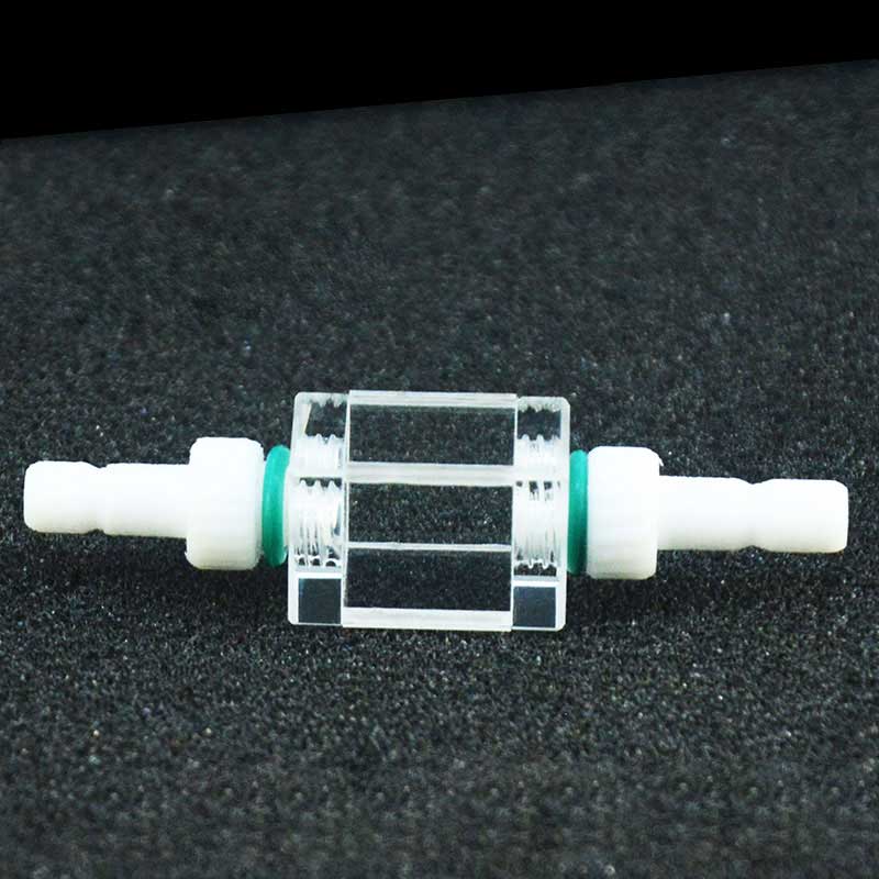 쿼츠 플로우 큐벳(PTFE 커넥터 포함), 10mm, 1ml, 윈도우 4개, 분말 소결