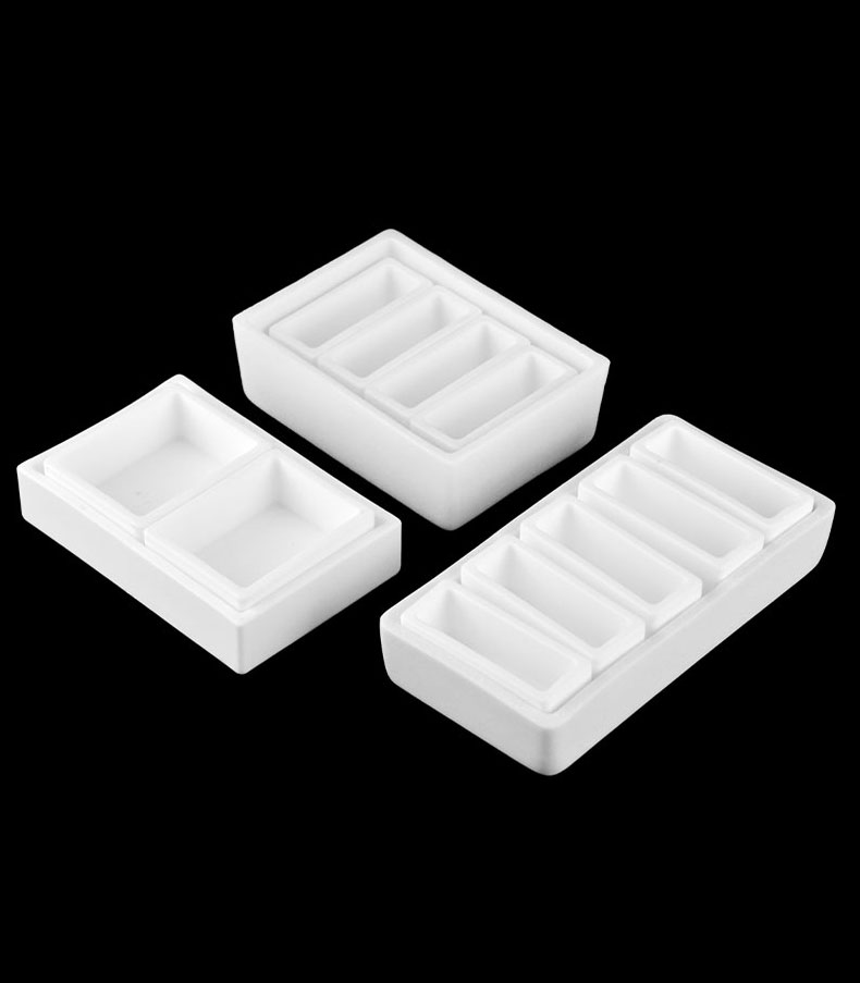 직사각형/사다리꼴 도가니는 슬립캐스팅 공정을 통해 고순도 Al2O3(>99%)를 사용하여 제조되므로 내부와 외부 모두 고밀도이며 표면이 매끄럽고 균일합니다. 최대 1600°C의 온도에서 장기간 사용할 수 있도록 설계되었습니다.
