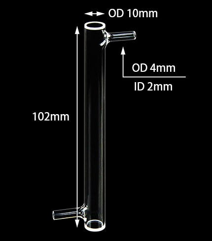 - 이 맞춤형 플로우 셀은 UV 쿼츠로 제작되었으며, 벽 두께는 1.5mm, 경로 길이 10mm, 부피 4ml, 튜브 커넥터의 OD는 4mm, ID는 2mm입니다.