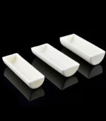 Deze halfronde kroezen van aluminiumoxide worden vervaardigd met hoogzuiver Al2O3 (>99%) door middel van een glij-gietproces, wat resulteert in een hoge dichtheid en gladde, gelijkmatige oppervlakken aan zowel de binnen- als buitenkant. Ze zijn ontworpen voor langdurig gebruik bij temperaturen tot 1600°C.