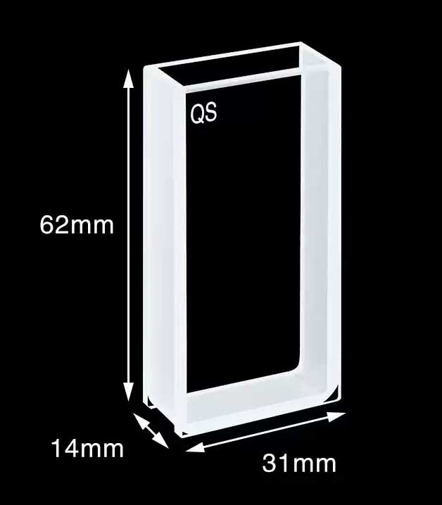 - Deze aangepaste flowcel is gemaakt van UV-kwarts, de wanddikte is 1,5 mm, de padlengte is 10 mm, het volume is 4 ml; de OD van de buisconnector is 4 mm, de ID is 2 mm.