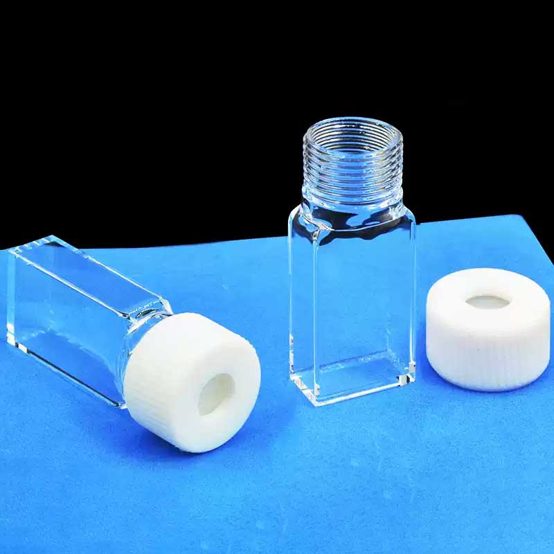 - Deze aangepaste flowcel is gemaakt van UV-kwarts, de wanddikte is 1,5 mm, de padlengte is 10 mm, het volume is 4 ml; de OD van de buisconnector is 4 mm, de ID is 2 mm.