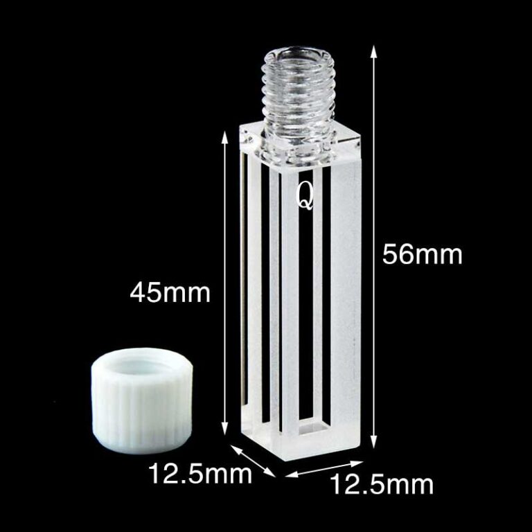 - This sealed cuvette has a standard bottom dimension of 12.5×12.5mm, but is shorter than the standard thread cuvette, the total height with cap is 48mm.