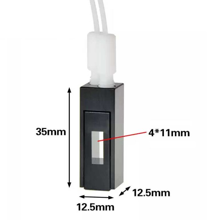 This black wall flowing cuvette is a light-shielded continuous flow cell with threaded connections, offering excellent sealing performance. It can be directly connected to a peristaltic pump, ensuring ideal experimental results.
