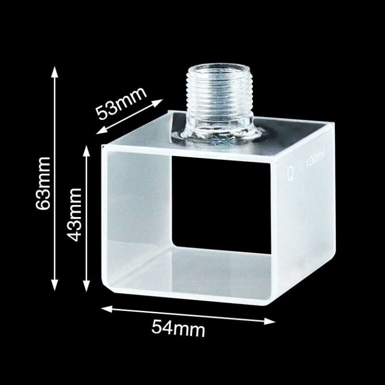 UV Quartz Sample Cell with Screw Cap, 50mm, 100ml, 2 Windows, Powder Sintered