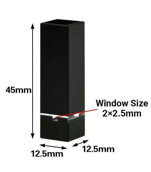 Black Ultra-micro Cuvette, UV Quartz, 50ul, ZD 8.5mm, 4 Windows, Glued
