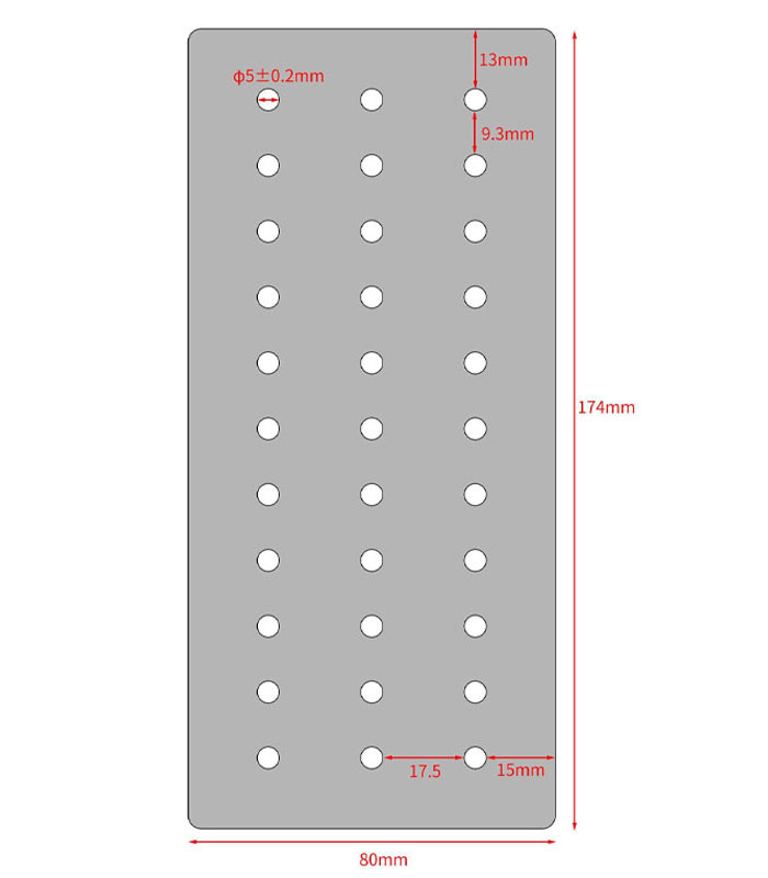 - Outer Dimensions (L×W): 174×80mm; Hole Diameter: 5±0.2mm; 1pc/pack.
