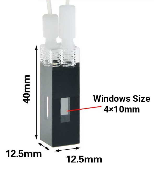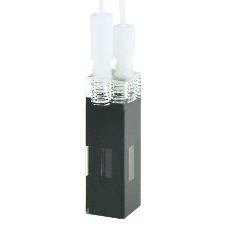 Quartz Black Flow Cuvette with Screw Connector, 400ul, 3 Windows, Glued