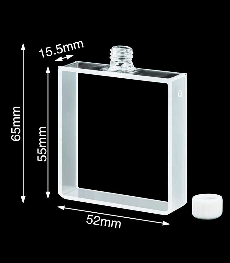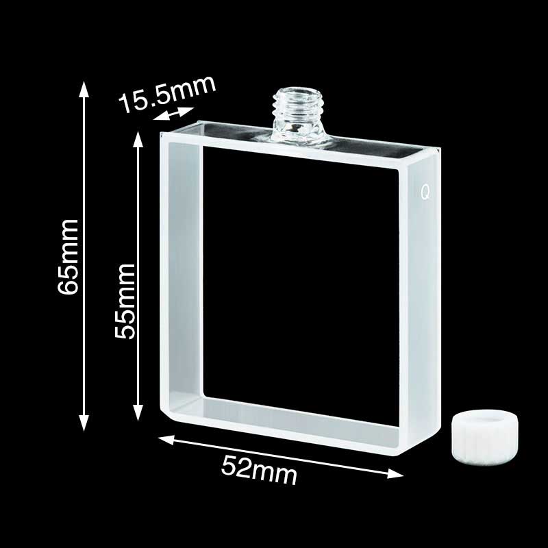 Quartz Cuvette with Screw Cap, Macro Window, 13mm, 24ml, 2 Windows, Powder Sintered