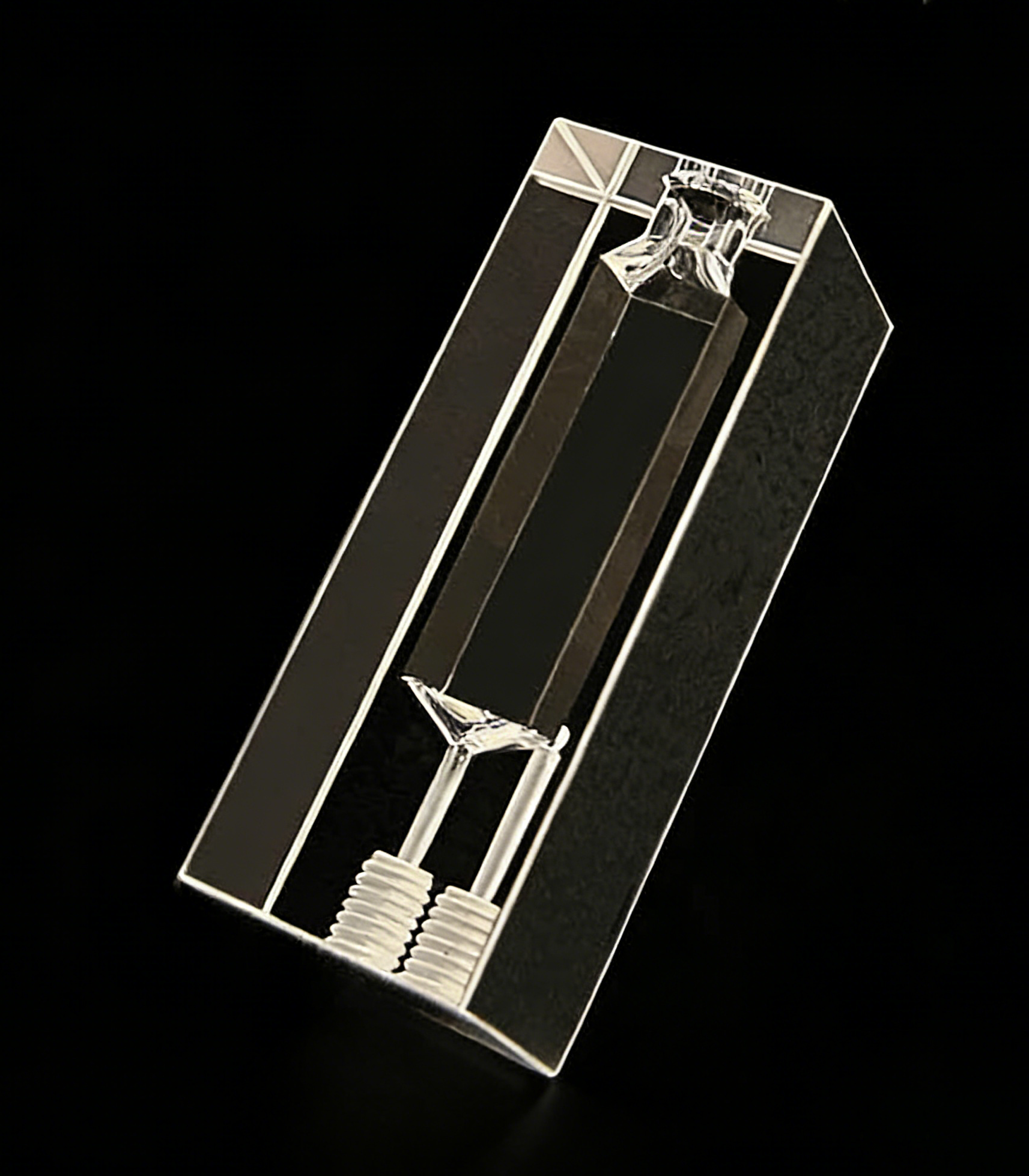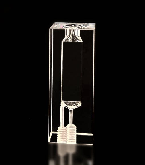 - This is a customized sheath-flow cell, which is made from RoHS-compliant materials and surface treatment. The internal surface achieves flatness and parallelism equivalent to external surfaces, delivering exceptional precision. With >90% transmittance and <5% variation, consistent optical performance is guaranteed. Additionally, the smooth internal walls are engineered to minimize liquid residue.