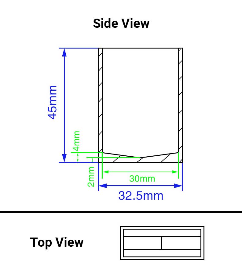 UV Quartz Micro Cuvette, 30mm, Double Bottom Slope, Glued